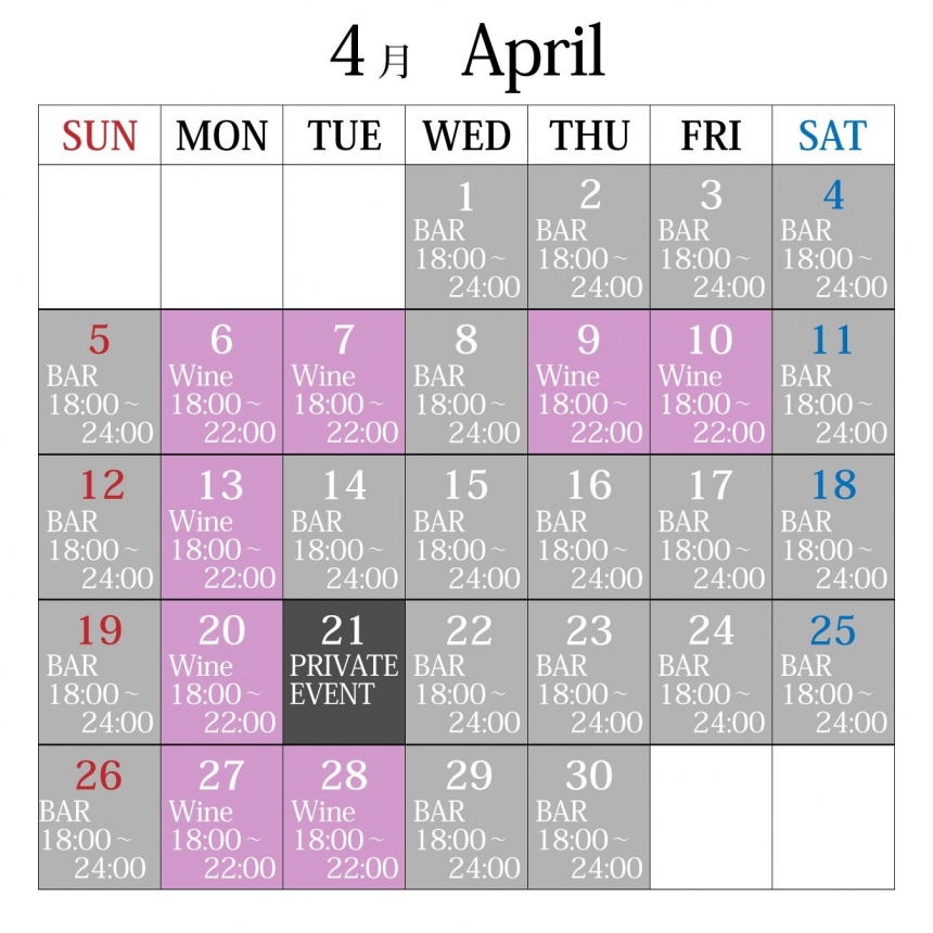 また、4月21日(火)は終日貸切営業とさせていただきます。