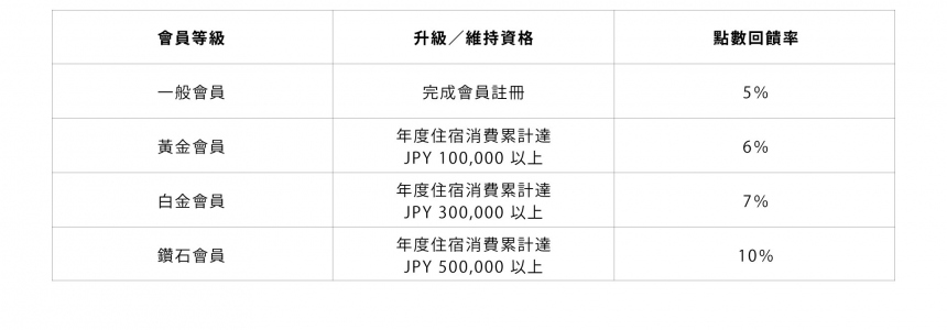 於此日期之前已完成預訂的住宿,恕不適用點數累積,敬請見諒。