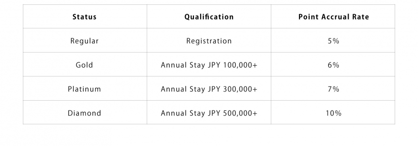 ・Accumulated points may be redeemed toward accommodation charges and other eligible payments.