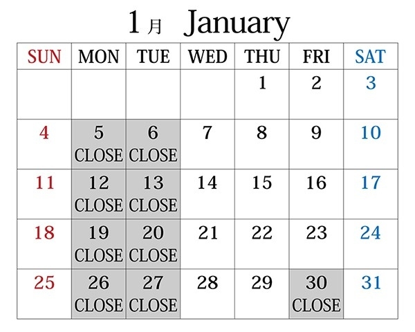 - THE SHOP 1月臨時休業日のお知らせ